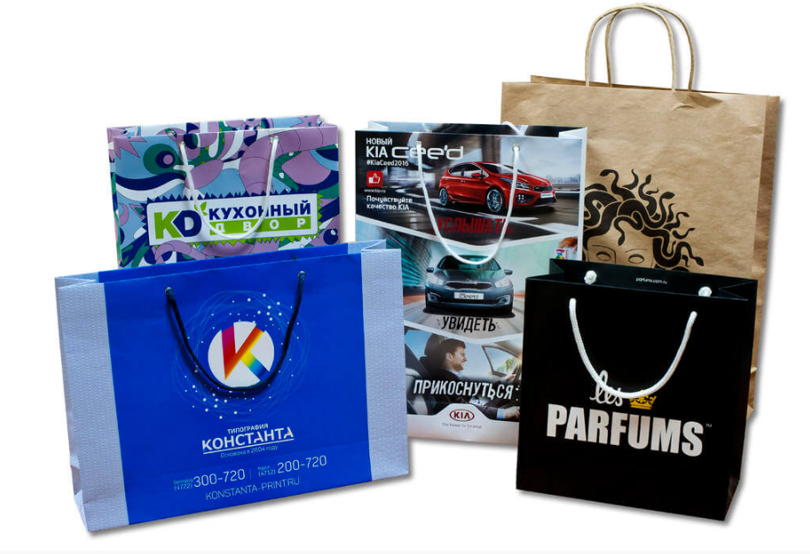 Пакет может быть как из крафт бумаги (обёрточная бумага), так и из бумаги с дополнительной глянцевой или матовой ламинацией.